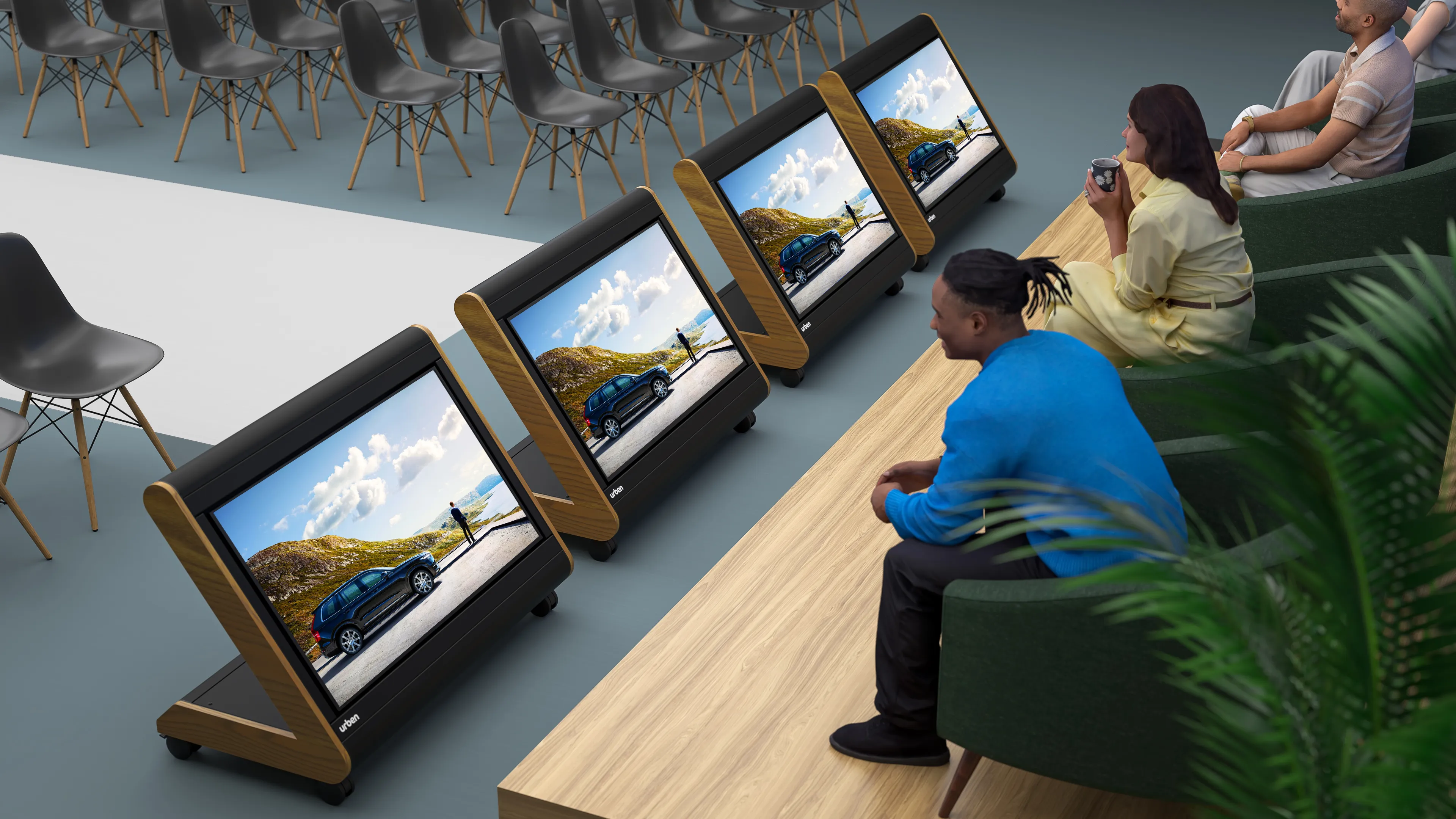 Unsere auf einem Sideboard montierte Besprechungsraumlösung bietet professionelle Urben-Funktionen in einem kompakten Paket. Sie lässt sich nahtlos in die Raumgestaltung integrieren.