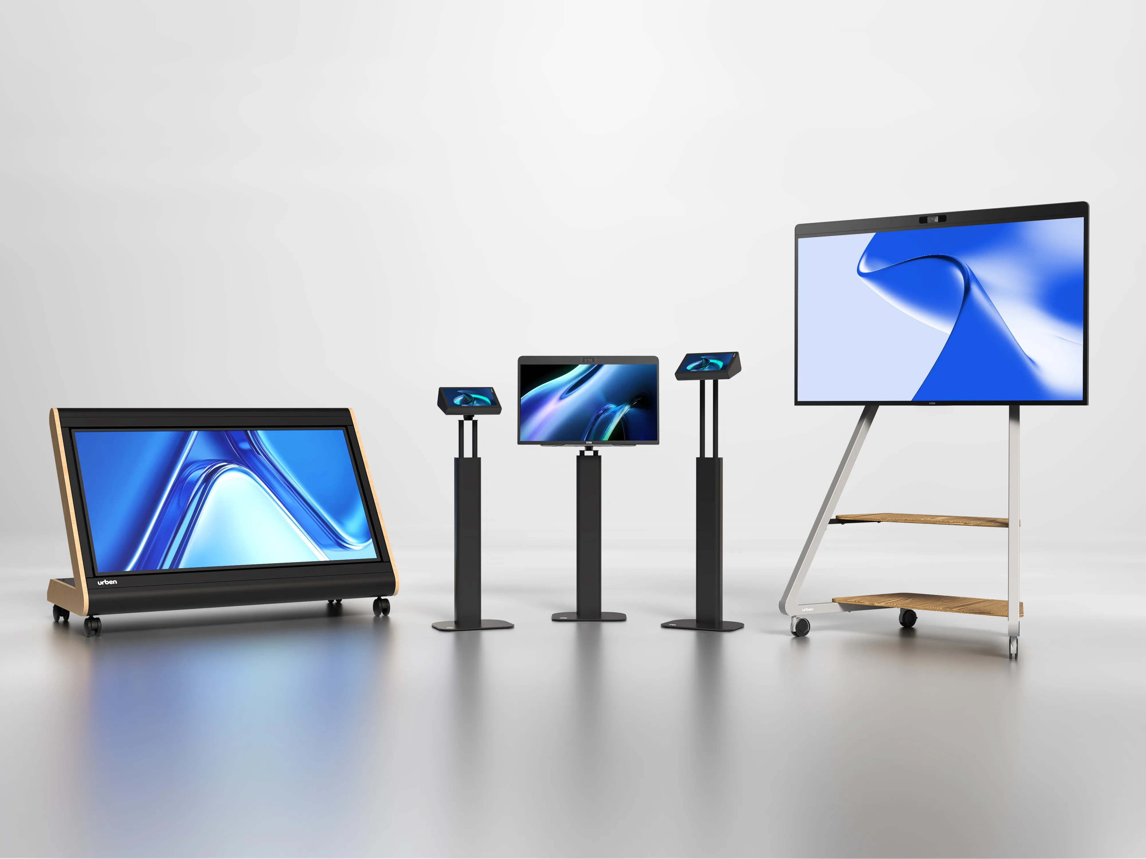 Our sleek and stylish height-adjustable touchscreen mount to enhance engagement and functionality in spaces like meeting rooms, lobbies and reception areas. Perfect for seamless digital interactions, easy meeting room bookings and simplified room controls.